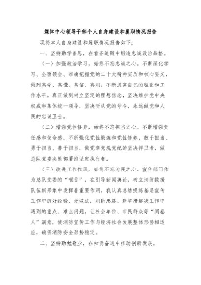 / 【七哥公文】2024年:媒体中心领导干部个人自身建设和履职情况报告+更多免费公文+VX:QiGeGongWen2024