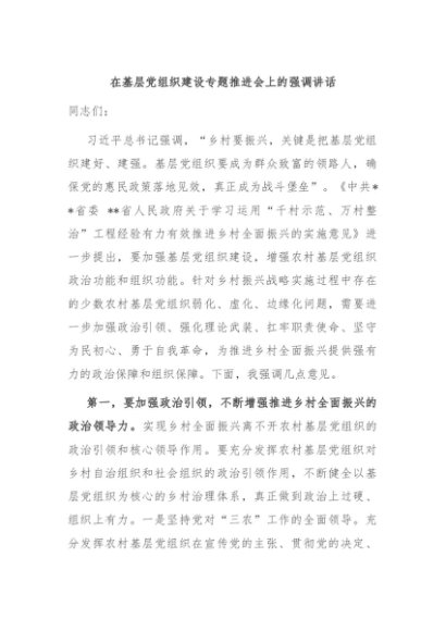 【七哥公文】2024年:在基层党组织建设专题推进会上的强调讲话+更多免费公文+VX:QiGeGongWen2024