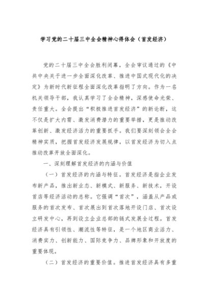 / 【七哥公文】2024年:学习党的二十届三中全会精神心得体会(首发经济)+更多免费公文+VX:QiGeGongWen2024