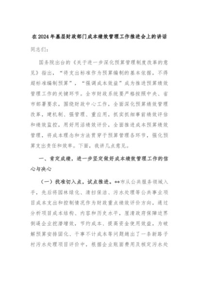 【七哥公文】2024年:在2024年基层财政部门成本绩效管理工作推进会上的讲话+更多免费公文+VX:QiGeGongWen2024
