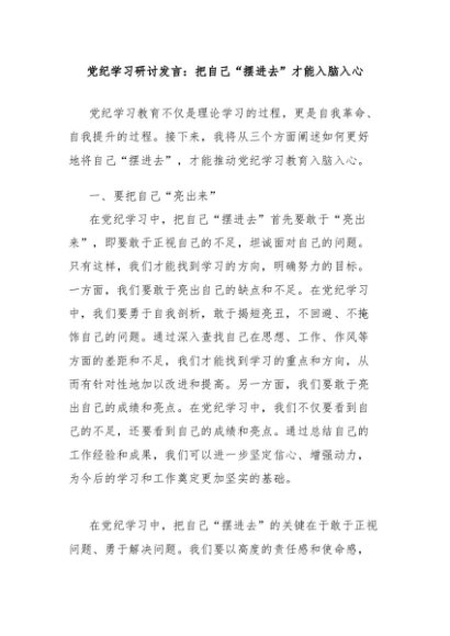 / 【七哥公文】2024年:党纪学习研讨发言:把自己“摆进去”才能入脑入心+更多免费公文+VX:QiGeGongWen2024