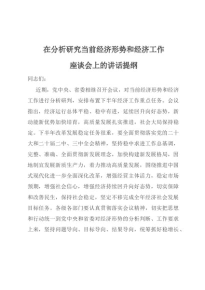 【七哥公文】2024年:在分析研究当前经济形势和经济工作座谈会上的讲话提纲+更多免费公文+VX:QiGeGongWen2024