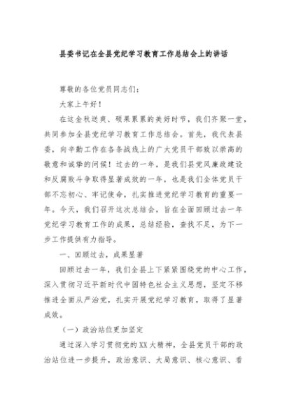/ 【七哥公文】2024年:县委书记在全县党纪学习教育工作总结会上的讲话+更多免费公文+VX:QiGeGongWen2024