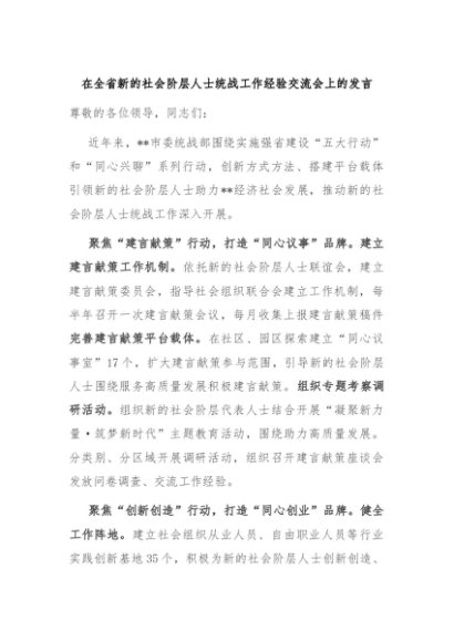 / 【七哥公文】2024年:在全省新的社会阶层人士统战工作经验交流会上的发言+更多免费公文+VX:QiGeGongWen2024