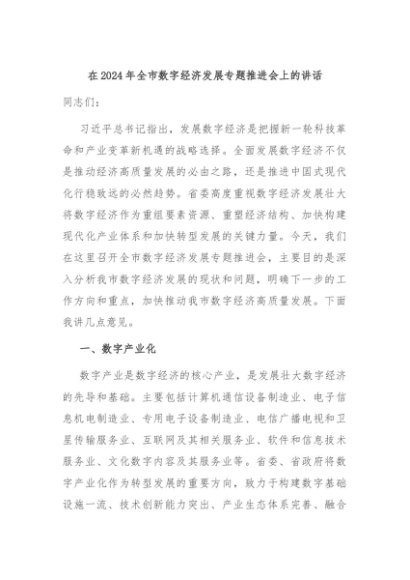 / 【七哥公文】2024年:在2024年全市数字经济发展专题推进会上的讲话+更多免费公文+VX:QiGeGongWen2024