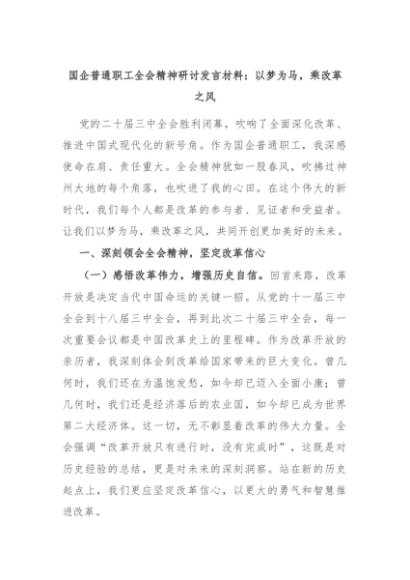 【七哥公文】2024年:国企普通职工全会精神研讨发言材料:以梦为马,乘改革之风+更多免费公文+VX:QiGeGongWen2024