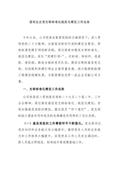 / 【七哥公文】2024年:国有企业党支部标准化规范化建设工作总结+更多免费公文+VX:QiGeGongWen2024