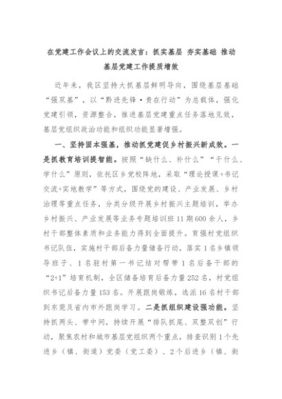 【七哥公文】2024年:在党建工作会议上的交流发言:抓实基层 夯实基础 推动基层党建工作提质增效+更多免费公文+VX:QiGeGongWen2024