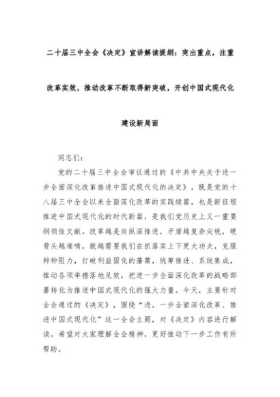 【七哥公文】2024年:二十届三中全会《决定》宣讲解读提纲:突出重点,注重改革实效,推动改革不断取得新突破,开创中国式现代化建设新局面+更多免费公文+VX:QiGeGongWen2024