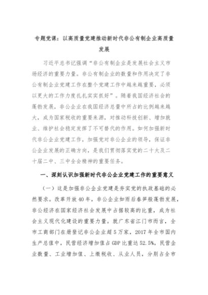 【七哥公文】2024年:专题党课:以高质量党建推动新时代非公有制企业高质量发展+更多免费公文+VX:QiGeGongWen2024