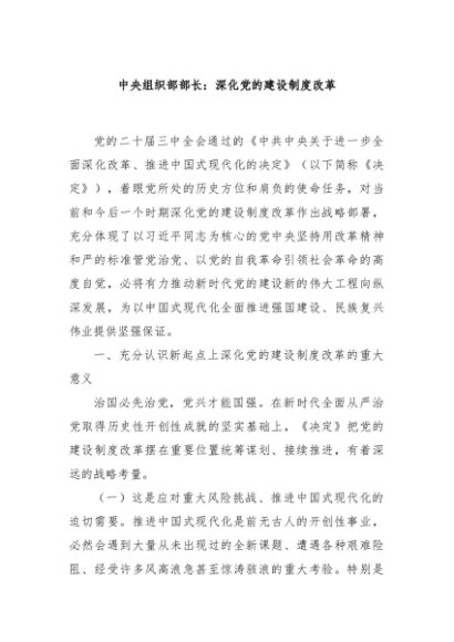 / 【七哥公文】2024年:中央组织部部长:深化党的建设制度改革+更多免费公文+VX:QiGeGongWen2024