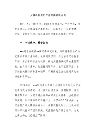 / 【七哥公文】2024年:乡镇纪委书记工作现实表现材料+更多免费公文+VX:QiGeGongWen2024