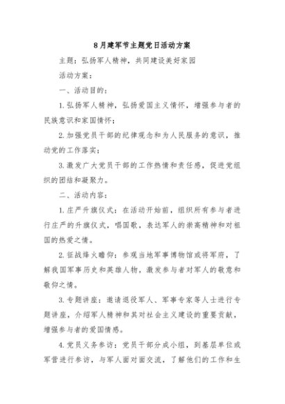 【七哥公文】2024年:8月建军节主题党日活动方案+更多免费公文+VX:QiGeGongWen2024