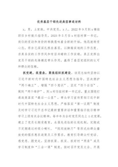 / 【七哥公文】2024年:优秀基层干部先进典型事迹材料+更多免费公文+VX:QiGeGongWen2024
