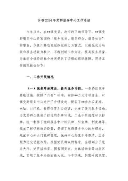 / 【七哥公文】2024年:乡镇2024年党群服务中心工作总结+更多免费公文+VX:QiGeGongWen2024