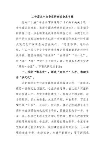 / 【七哥公文】2024年:二十届三中全会宣讲座谈会发言稿+更多免费公文+VX:QiGeGongWen2024