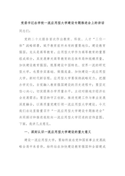 【七哥公文】2024年:党委书记在学校一流应用型大学建设专题推进会上的讲话+更多免费公文+VX:QiGeGongWen2024