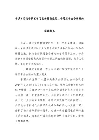 【七哥公文】2024年:中共X委关于认真学习宣传贯彻党的二十届三中全会精神的实施意见+更多免费公文+VX:QiGeGongWen2024