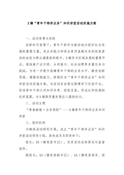 / 【七哥公文】2024年:X镇“青年干部讲业务”知识讲堂活动实施方案+更多免费公文+VX:QiGeGongWen2024