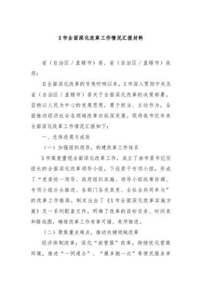 / 【七哥公文】2024年:X市全面深化改革工作情况汇报材料+更多免费公文+VX:QiGeGongWen2024