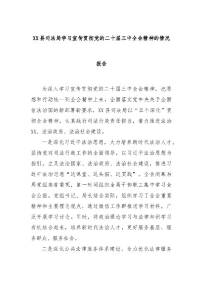 【七哥公文】2024年:XX县司法局学习宣传贯彻党的二十届三中全会精神的情况报告+更多免费公文+VX:QiGeGongWen2024