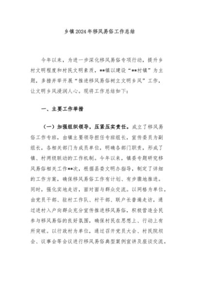 / 【七哥公文】2024年:乡镇2024年移风易俗工作总结+更多免费公文+VX:QiGeGongWen2024