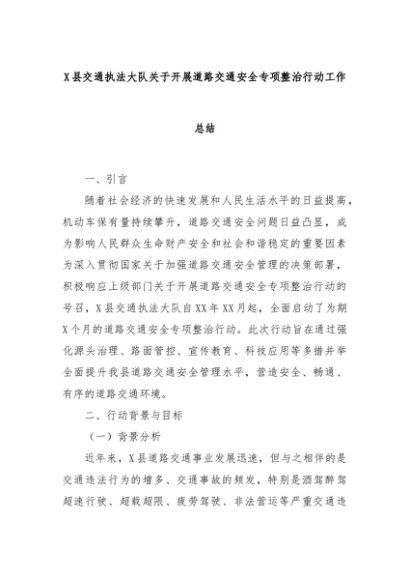 【七哥公文】2024年:X县交通执法大队关于开展道路交通安全专项整治行动工作总结+更多免费公文+VX:QiGeGongWen2024