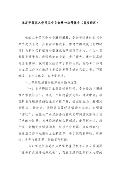 / 【七哥公文】2024年:基层干部深入学习三中全会精神心得体会(首发经济)+更多免费公文+VX:QiGeGongWen2024