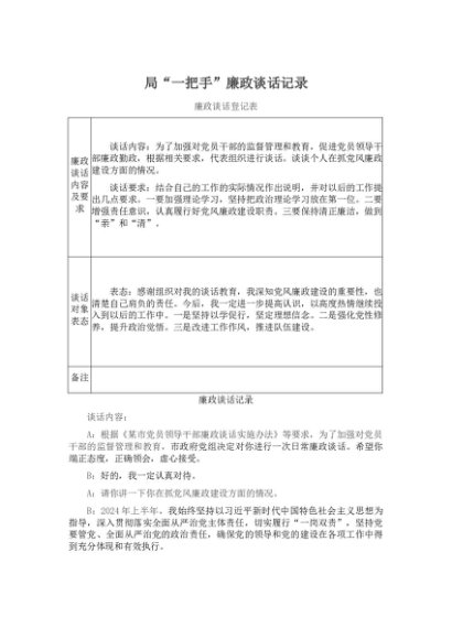 【七哥公文】2024年:局“一把手”廉政谈话记录+更多免费公文+VX:QiGeGongWen2024