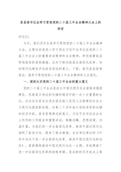 【七哥公文】2024年:某县委书记在学习贯彻党的二十届三中全会精神大会上的讲话+更多免费公文+VX:QiGeGongWen2024