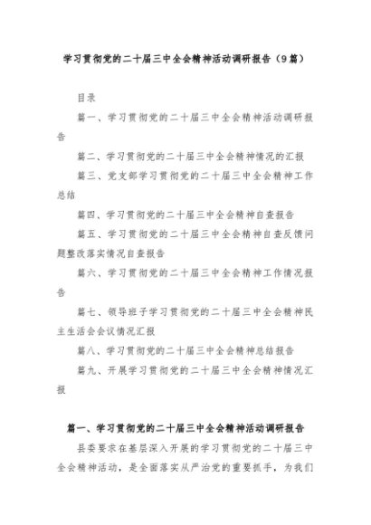 【七哥公文】2024年:(9篇)学习贯彻党的二十届三中全会精神活动调研报告+更多免费公文+VX:QiGeGongWen2024