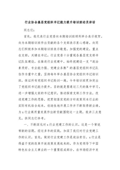 / 【七哥公文】2024年:行业协会基层党组织书记能力提升培训班动员讲话+更多免费公文+VX:QiGeGongWen2024