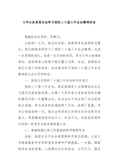 / 【七哥公文】2024年:X市公安局局长在学习党的二十届三中全会精神发言+更多免费公文+VX:QiGeGongWen2024