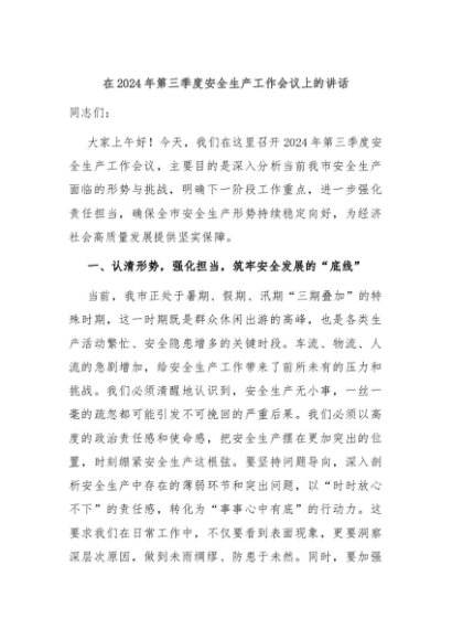/ 【七哥公文】2024年:在2024年第三季度安全生产工作会议上的讲话+更多免费公文+VX:QiGeGongWen2024