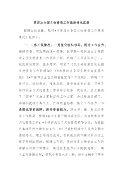 / 【七哥公文】2024年:第四次全国文物普查工作推进情况汇报+更多免费公文+VX:QiGeGongWen2024