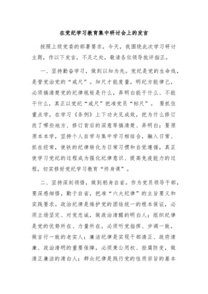/ 【七哥公文】2024年:在党纪学习教育集中研讨会上的发言+更多免费公文+VX:QiGeGongWen2024
