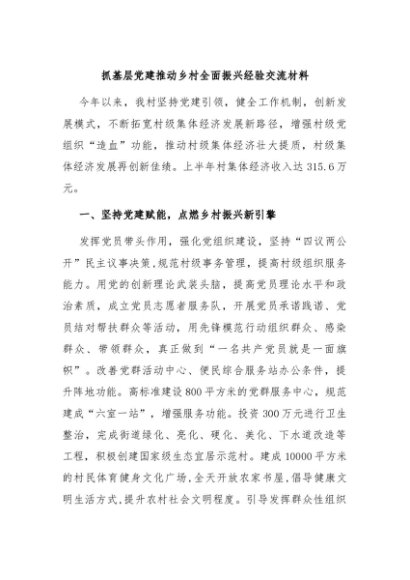/ 【七哥公文】2024年:抓基层党建推动乡村全面振兴经验交流材料+更多免费公文+VX:QiGeGongWen2024