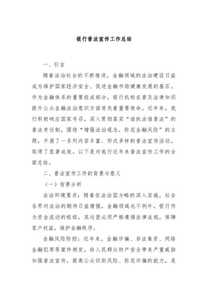 / 【七哥公文】2024年:银行普法宣传工作总结+更多免费公文+VX:QiGeGongWen2024