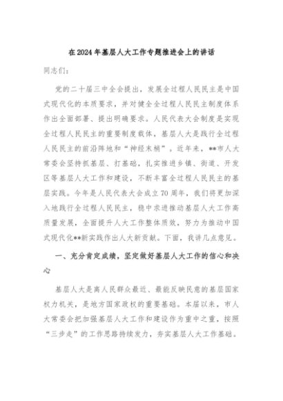 / 【七哥公文】2024年:在2024年基层人大工作专题推进会上的讲话+更多免费公文+VX:QiGeGongWen2024