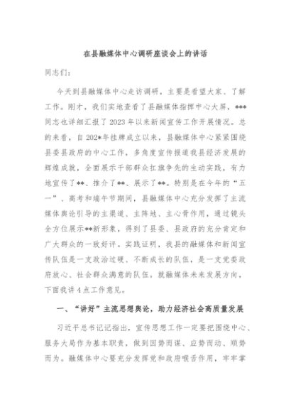 / 【七哥公文】2024年:在县融媒体中心调研座谈会上的讲话+更多免费公文+VX:QiGeGongWen2024