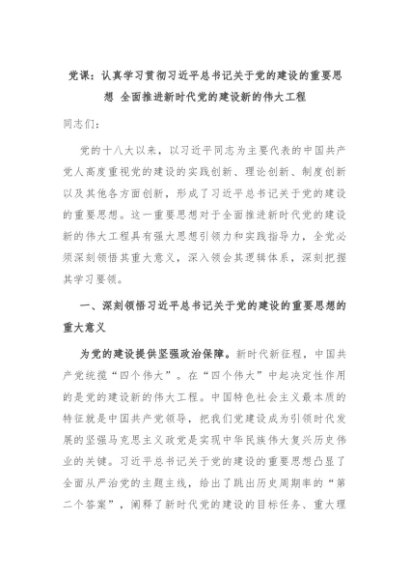 【七哥公文】2024年:党课:认真学习贯彻习近平总书记关于党的建设的重要思想 全面推进新时代党的建设新的伟大工程+更多免费公文+VX:QiGeGongWen2024
