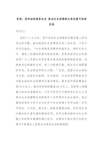 【七哥公文】2024年:党课:深学细悟重要论述 推动社会保障事业高质量可持续发展+更多免费公文+VX:QiGeGongWen2024