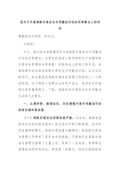 【七哥公文】2024年:县关于开展道路交通安全专项整治行动动员部署会上的讲话+更多免费公文+VX:QiGeGongWen2024