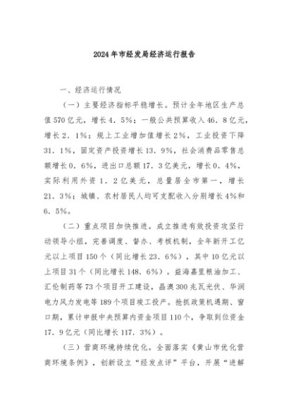 / 【七哥公文】2024年:2024年市经发局经济运行报告+更多免费公文+VX:QiGeGongWen2024