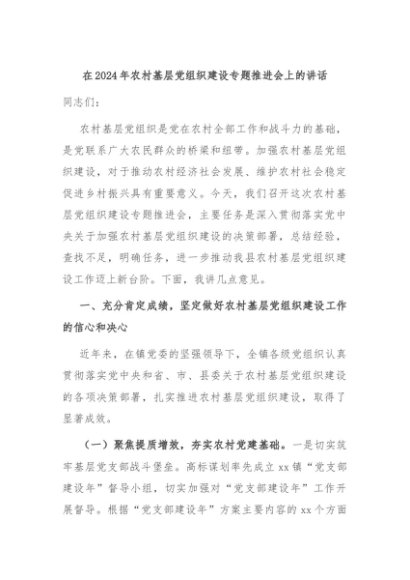/ 【七哥公文】2024年:在2024年农村基层党组织建设专题推进会上的讲话+更多免费公文+VX:QiGeGongWen2024