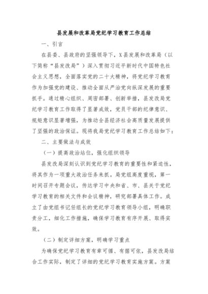 / 【七哥公文】2024年:县发展和改革局党纪学习教育工作总结+更多免费公文+VX:QiGeGongWen2024