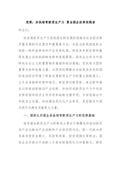/ 【七哥公文】2024年:党课:加快培育新质生产力 勇当国企改革实践者+更多免费公文+VX:QiGeGongWen2024