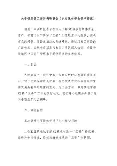 / 【七哥公文】2024年:关于镇三资工作的调研报告(农村集体资金资产资源)+更多免费公文+VX:QiGeGongWen2024