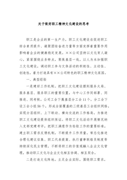 / 【七哥公文】2024年:关于做好职工精神文化建设的思考+更多免费公文+VX:QiGeGongWen2024