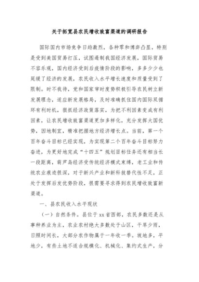 / 【七哥公文】2024年:关于拓宽县农民增收致富渠道的调研报告+更多免费公文+VX:QiGeGongWen2024